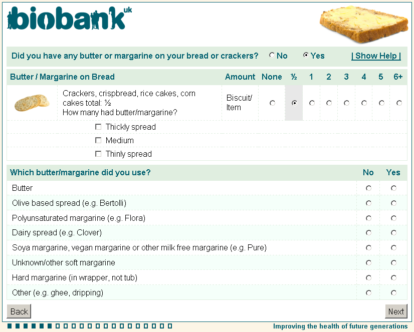 Online diet questionnaire screenshot wd0084, showing appearance as seen by participants using a web browser circa 2011.