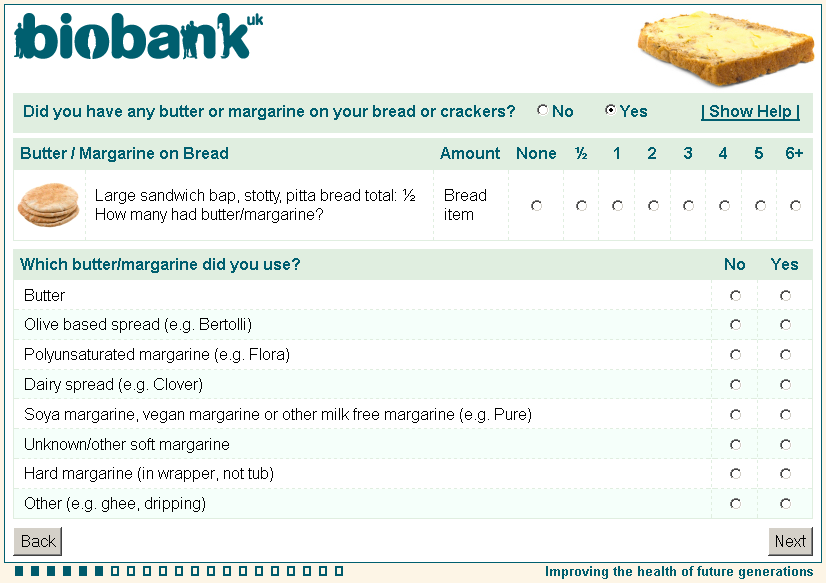 Online diet questionnaire screenshot wd0079, showing appearance as seen by participants using a web browser circa 2011.