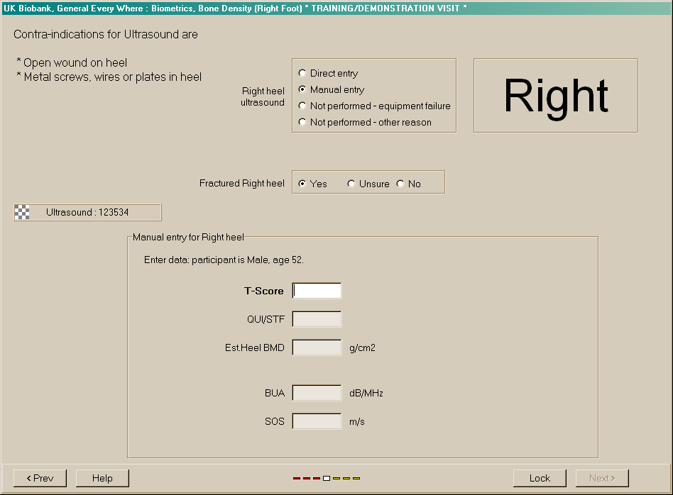 Screenshow showing staff interface for manual entry of bone densitometry results