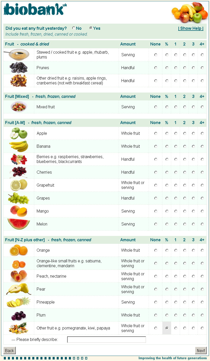 Online diet questionnaire screenshot wd0045, showing appearance as seen by participants using a web browser circa 2011.