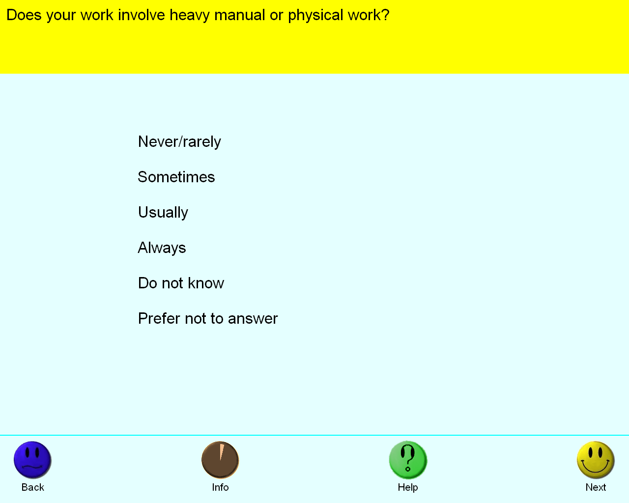 Screenshot of touchscreen questionnaire used to capture field 816 in the UK Biobank Assessment Centres using the ACE system.