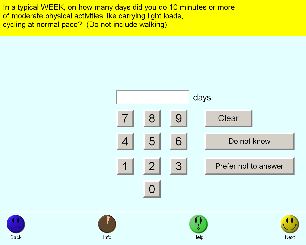 Screenshot of touchscreen questionnaire used to capture field 884 in the UK Biobank Assessment Centres using the ACE system.