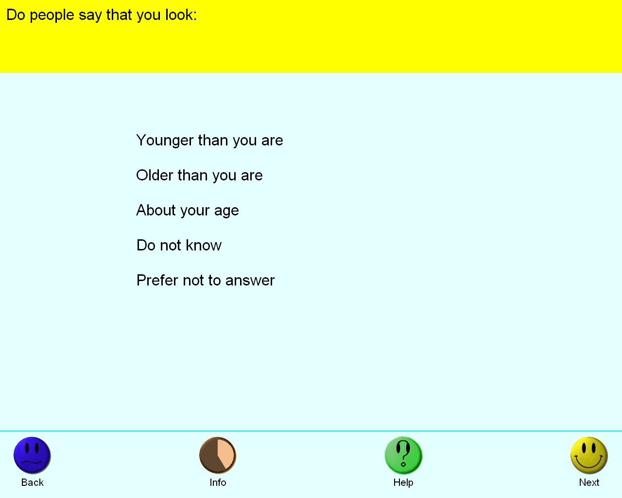 Screenshot of touchscreen questionnaire used to capture field 1757 in the UK Biobank Assessment Centres using the ACE system.