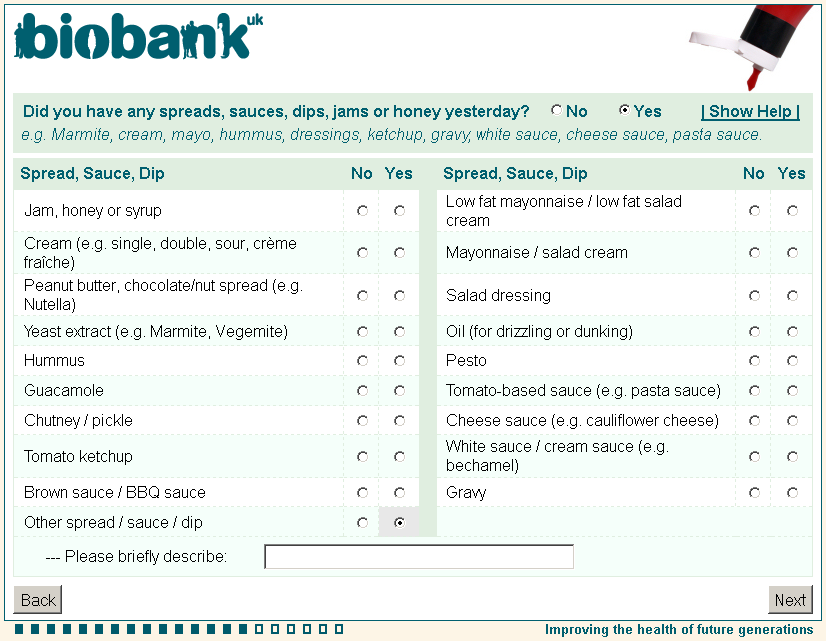 Online diet questionnaire screenshot wd0039, showing appearance as seen by participants using a web browser circa 2011.