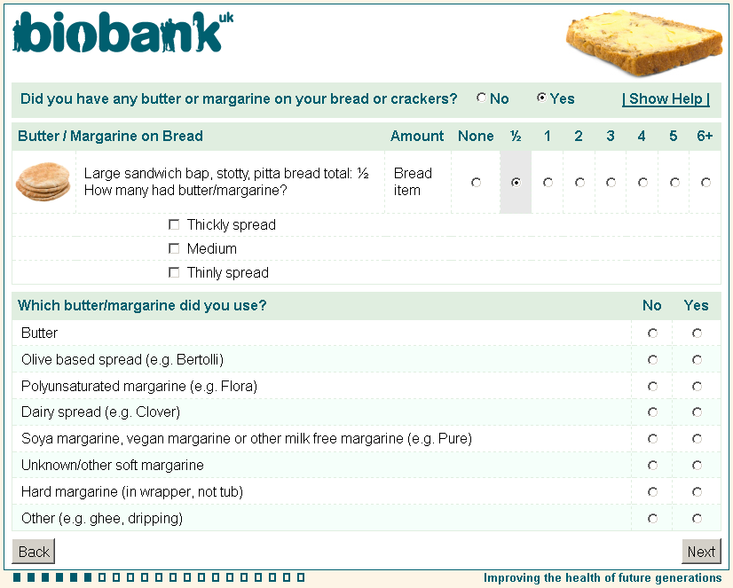 Online diet questionnaire screenshot wd0080, showing appearance as seen by participants using a web browser circa 2011.