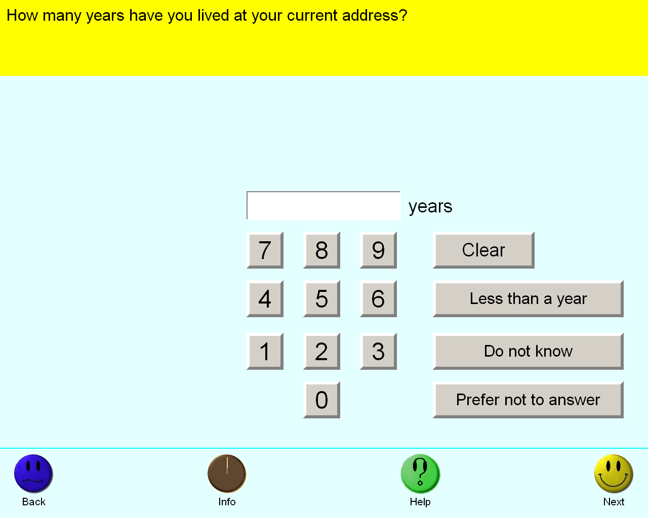 Screenshot of touchscreen questionnaire used to capture field 699 in the UK Biobank Assessment Centres using the ACE system.