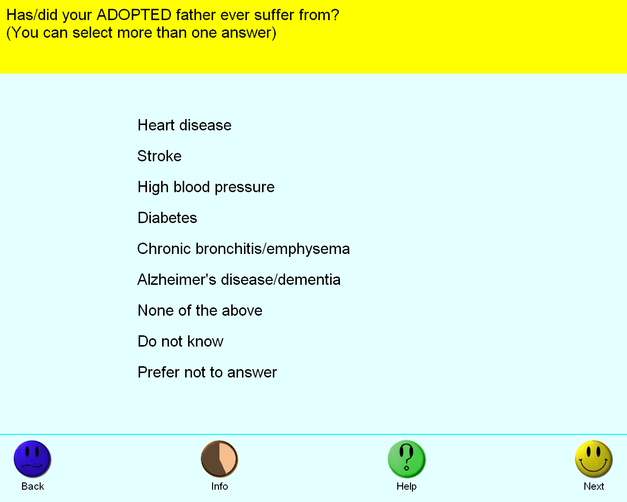 Screenshot of touchscreen questionnaire used to capture field 6166 in the UK Biobank Assessment Centres using the ACE system.