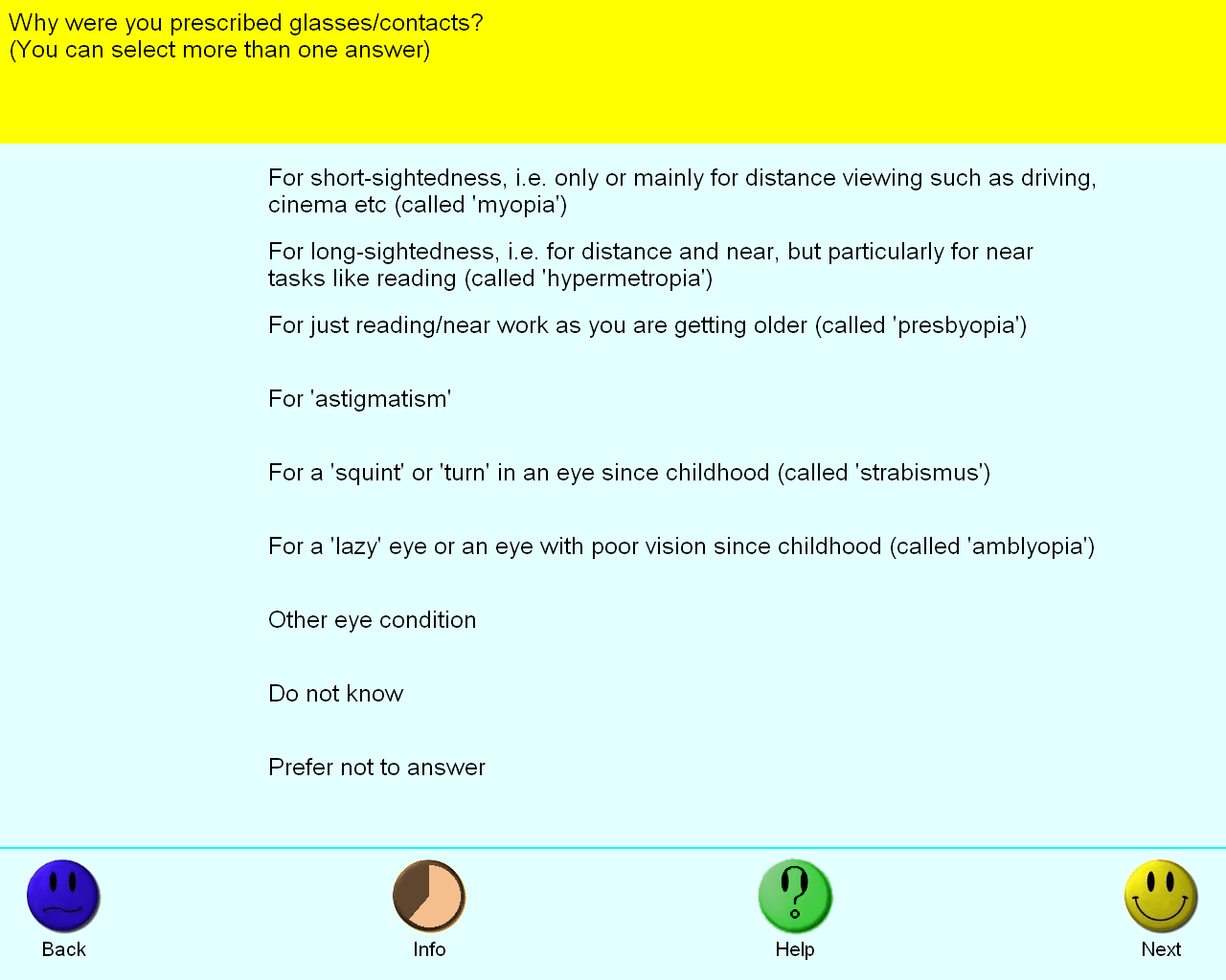 Screenshot of touchscreen questionnaire used to capture field 6147 in the UK Biobank Assessment Centres using the ACE system.