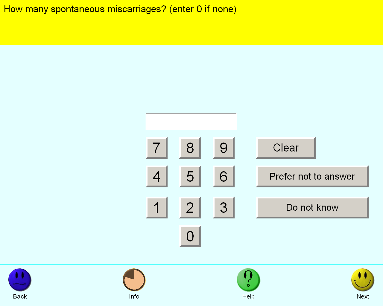 Screenshot of touchscreen questionnaire used to capture field 3839 in the UK Biobank Assessment Centres using the ACE system.