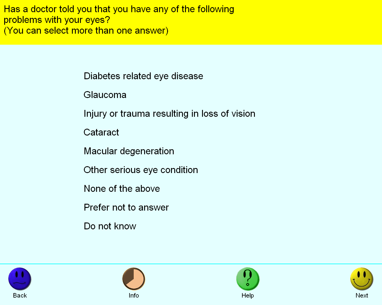 Screenshot of touchscreen questionnaire used to capture field 6148 in the UK Biobank Assessment Centres using the ACE system.