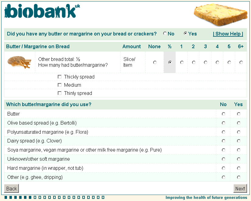 Online diet questionnaire screenshot wd0088, showing appearance as seen by participants using a web browser circa 2011.