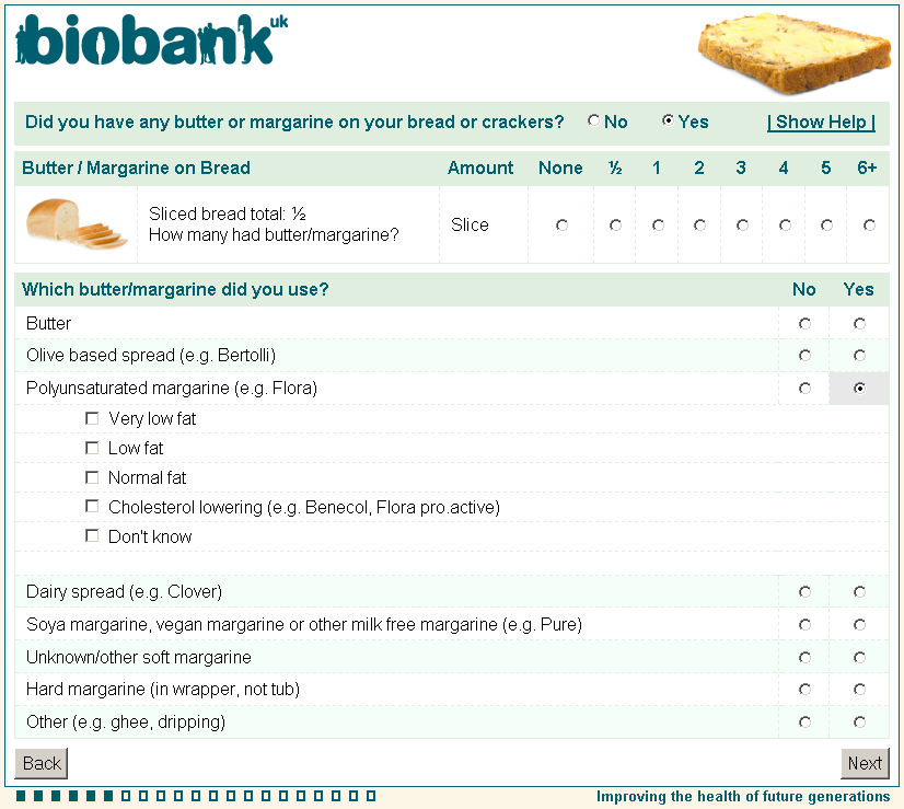 Online diet questionnaire screenshot wd0091, showing appearance as seen by participants using a web browser circa 2011.