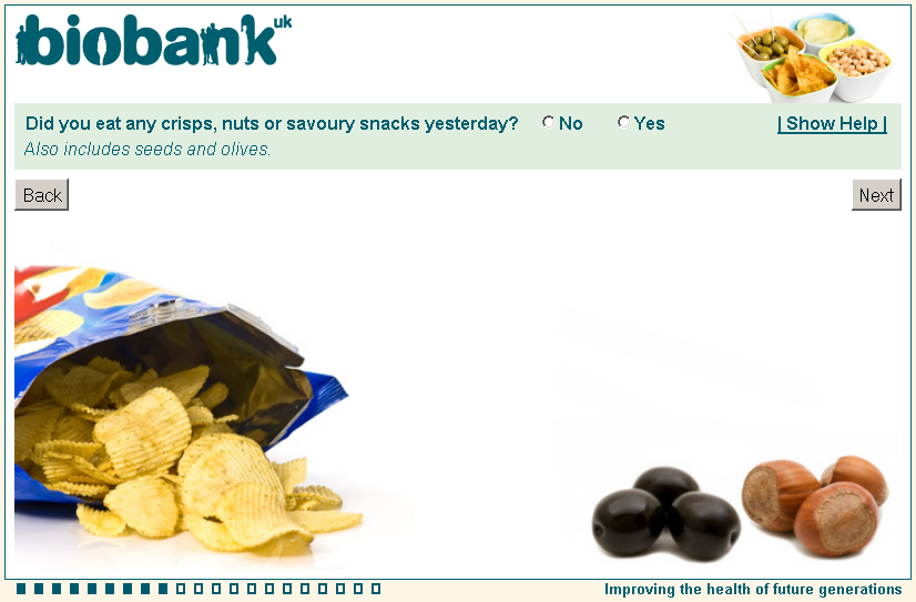 Online diet questionnaire screenshot wd0019, showing appearance as seen by participants using a web browser circa 2011.
