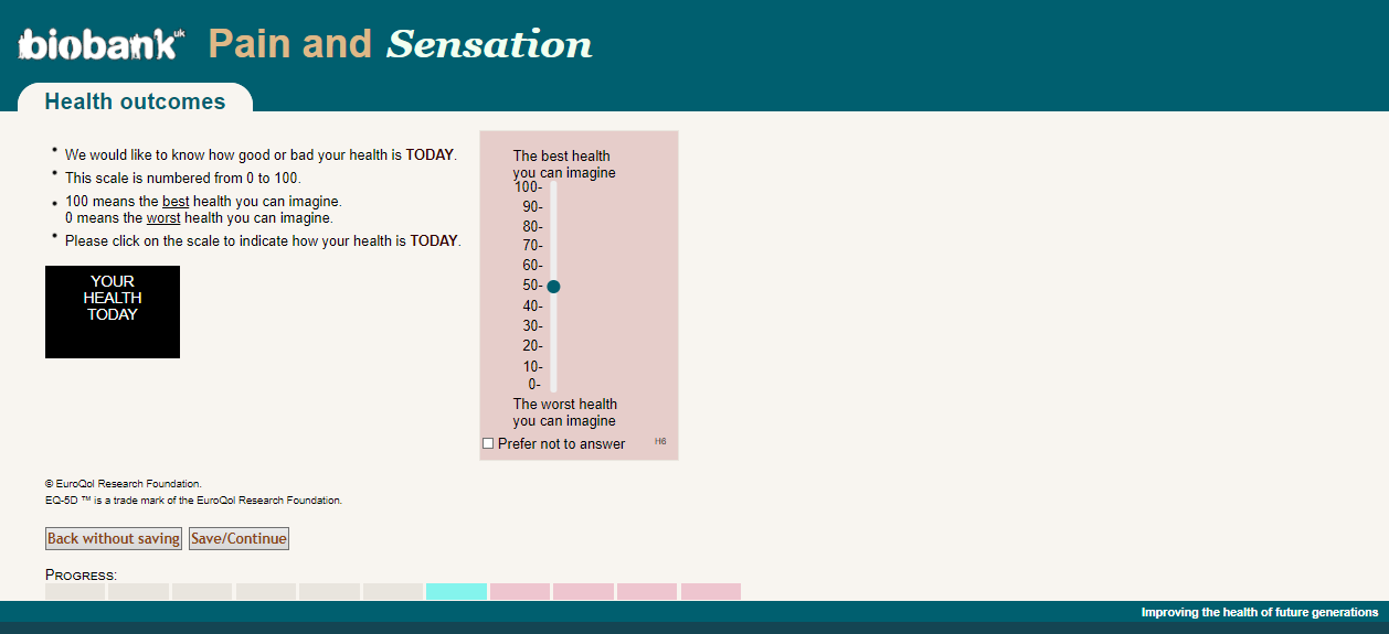 Online pain questionnaire screenshot of question H6, showing appearance as seen by participants circa 2019.