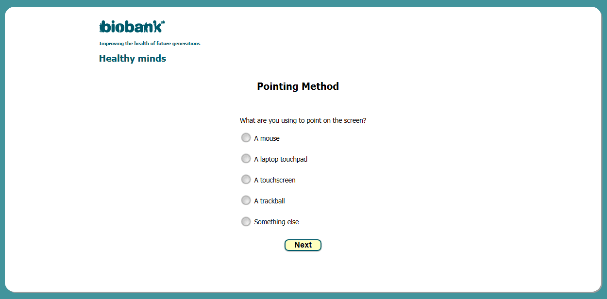 Participants were asked what device they were using to point at the screen for the online questionaire.