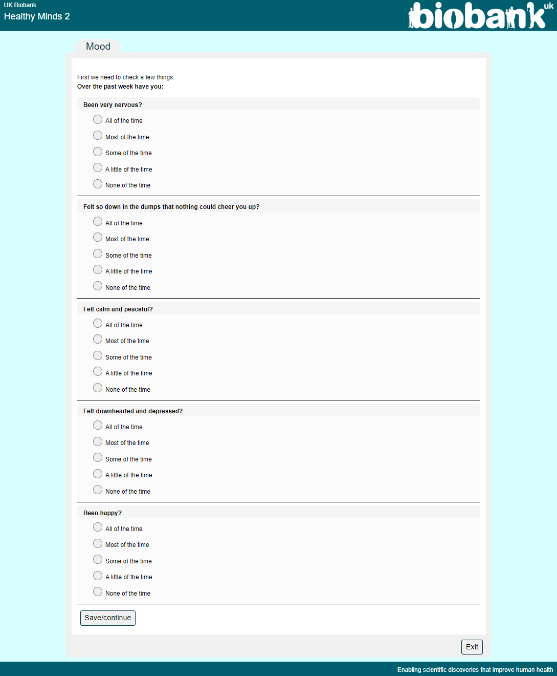 Mood questionnaire screen. Version shown is from 2021 implementation.