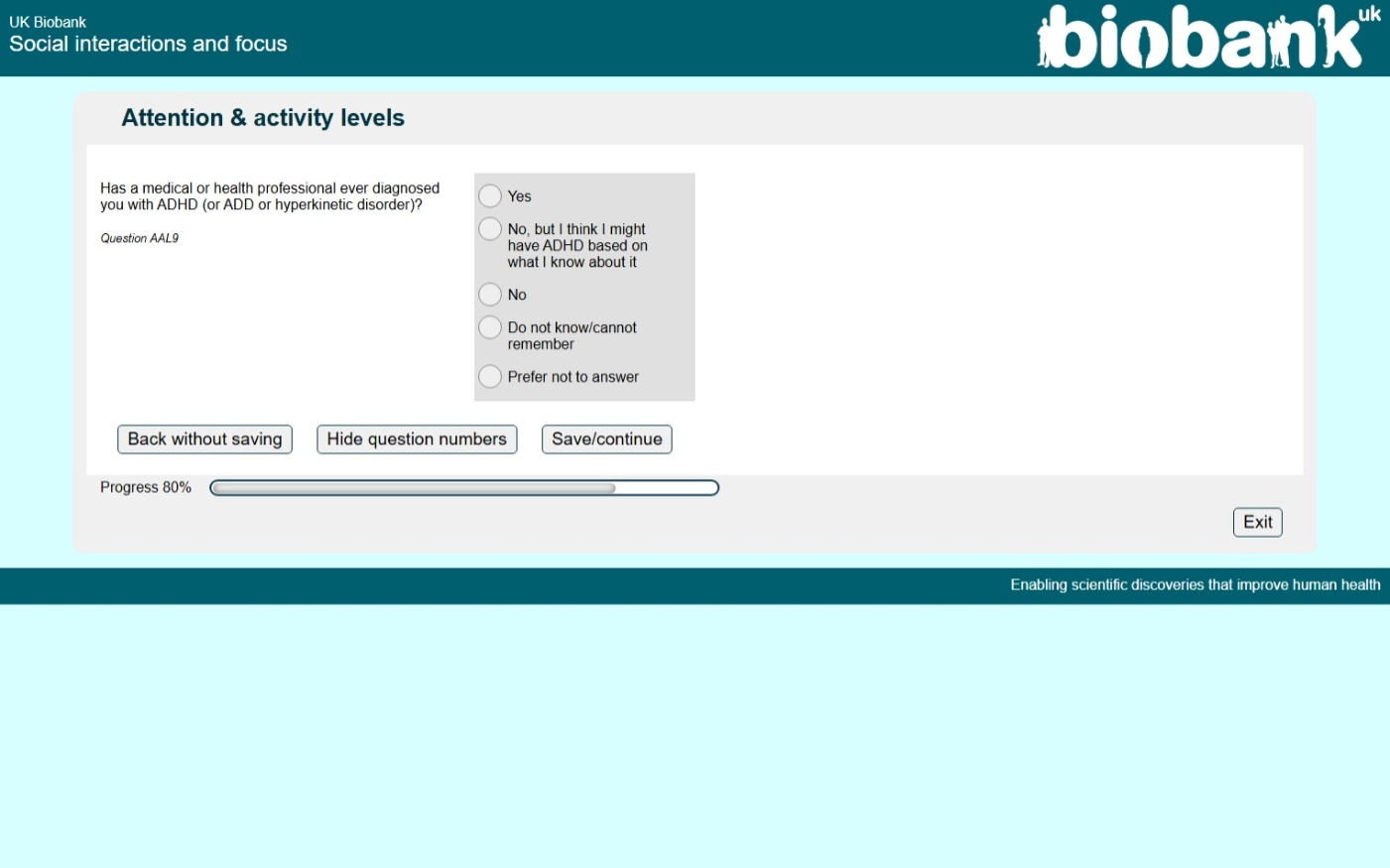 Online Social Interactions and Focus questionnaire screenshot AAL9, showing appearance as seen by participants circa 2023