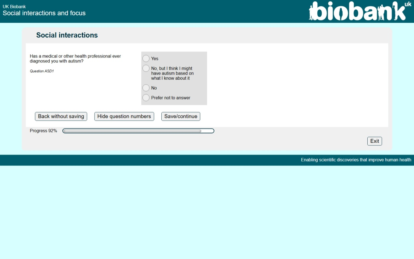Online Social Interactions and Focus questionnaire screenshot ASD1, showing appearance as seen by participants circa 2023