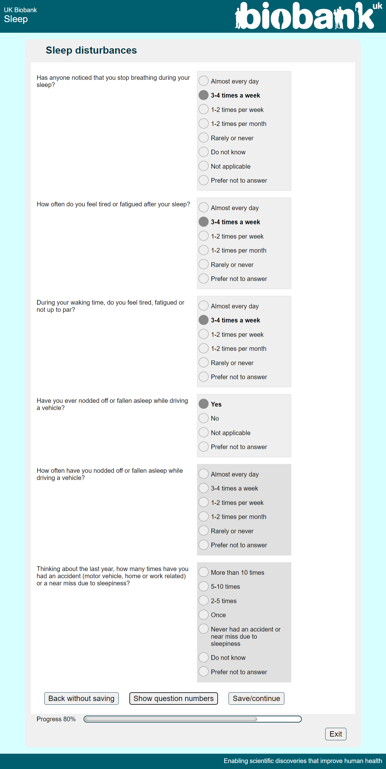 Online sleep questionnaire screenshot Apn5a-Apn6, showing appearance as seen by participants circa 2022