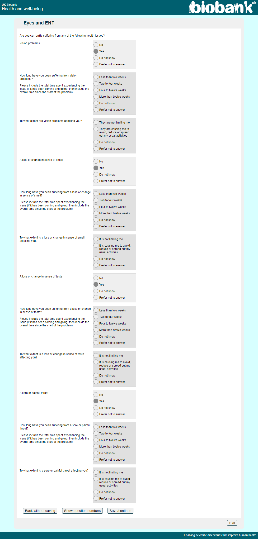 Online health and wellbeing questionnaire screenshot ht1dg_ht3dg, showing appearance as seen by participants circa 2021