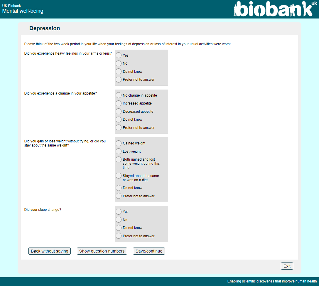 Online mental wellbeing questionnaire screenshot D10_12, showing appearance as seen by participants circa 2022