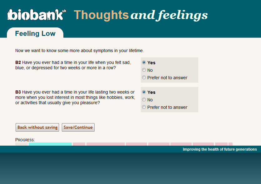 Screenshot of web-page for lifetime depression from the UK Biobank on-line "Thoughts and Feelings" mental health questionnaire