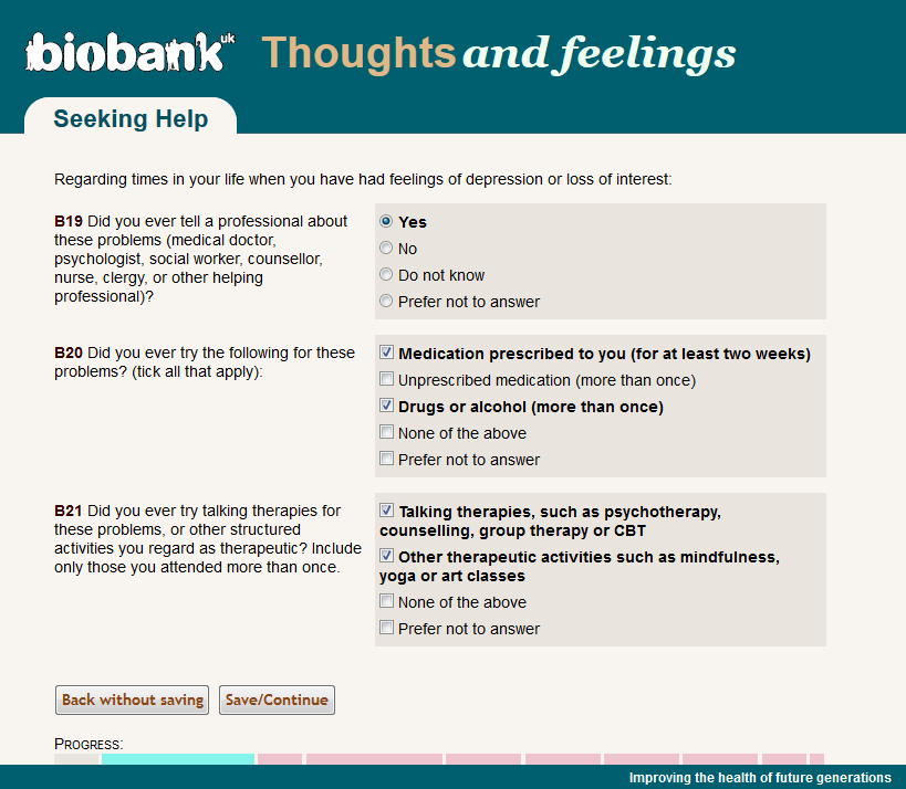 Screenshot of web-page for remedies attempted for depression from the UK Biobank on-line "Thoughts and Feelings" mental health questionnaire