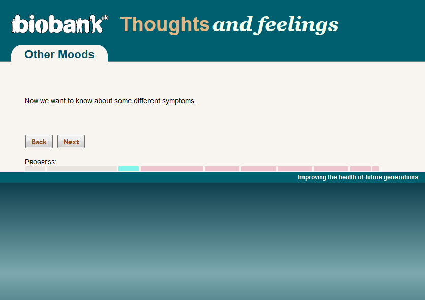 Screenshot of web-page for introduction to symptoms section from the UK Biobank on-line "Thoughts and Feelings" mental health questionnaire