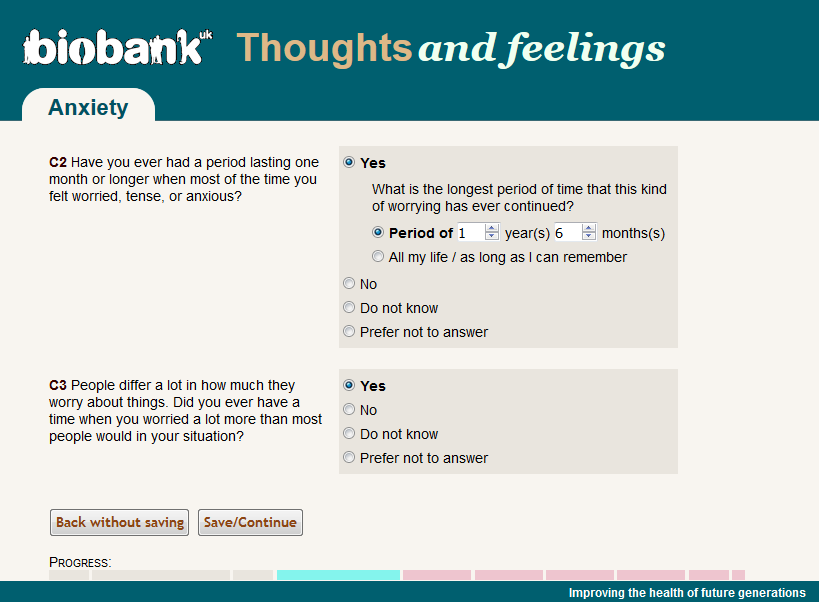 Screenshot of web-page for lifetime anxiety from the UK Biobank on-line "Thoughts and Feelings" mental health questionnaire