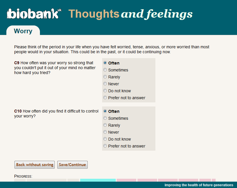 Screenshot of web-page for type of worry (section 3/3) from the UK Biobank on-line "Thoughts and Feelings" mental health questionnaire