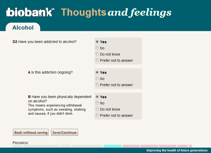 Screenshot of web-page for addiction to alcohol from the UK Biobank on-line "Thoughts and Feelings" mental health questionnaire