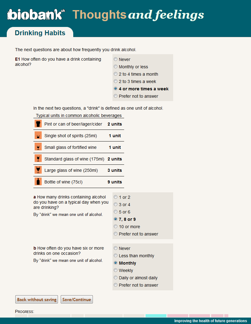 Screenshot of web-page for frequency of drinking alcohol from the UK Biobank on-line "Thoughts and Feelings" mental health questionnaire