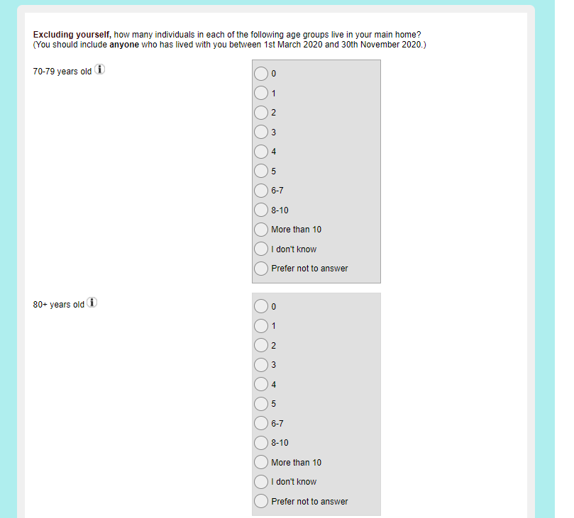 Online SARS-CoV-2 coronavirus exposure questionnaire screenshot of question B4.9-B4.10