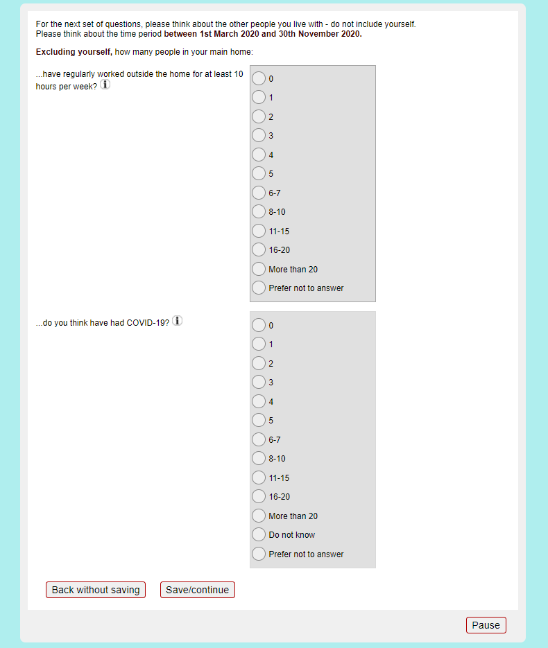 Online SARS-CoV-2 coronavirus exposure questionnaire screenshot of question B6.1-B6.2