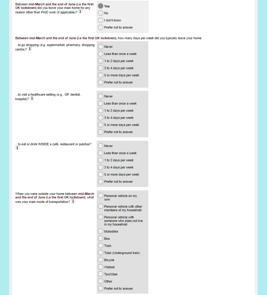 Online SARS-CoV-2 coronavirus exposure questionnaire screenshot of question C11-C12 for March-June