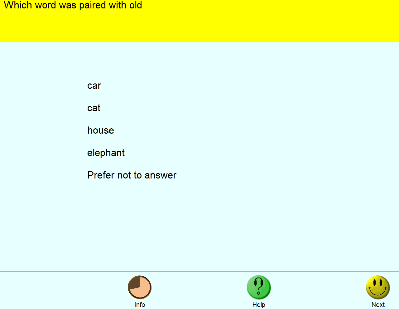 | Name: | Screenshot of paired associated learning question "old" |