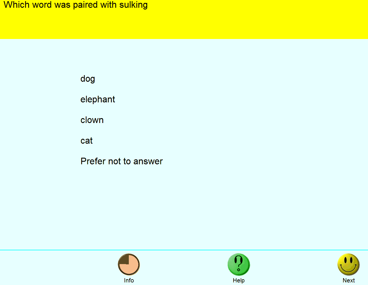 Screenshot of paired associated learning question "sulking"