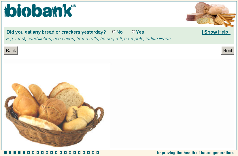 Online diet questionnaire screenshot wd0012, showing appearance as seen by participants using a web browser circa 2011.