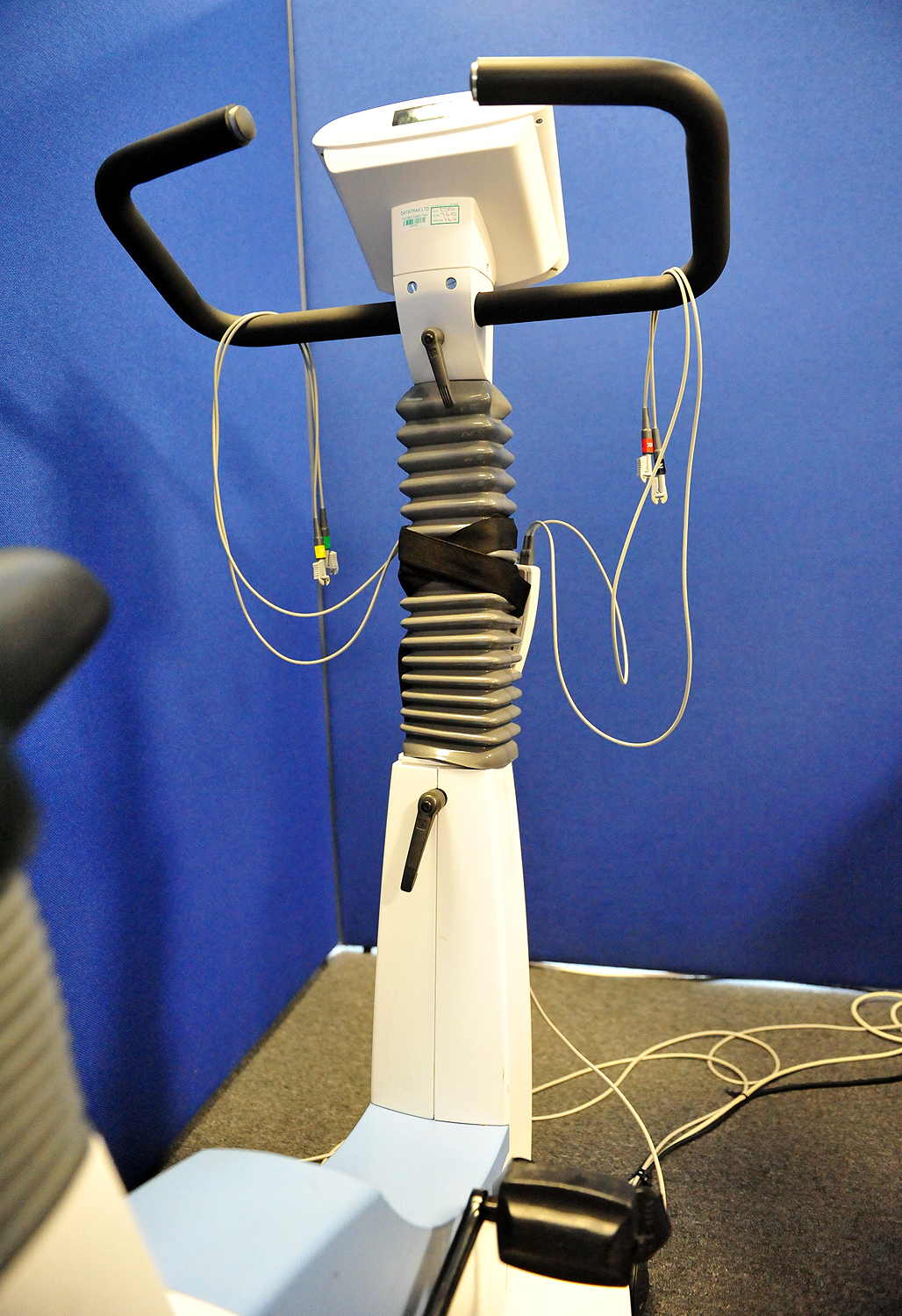 Exercise bicycle showing ECG wires
