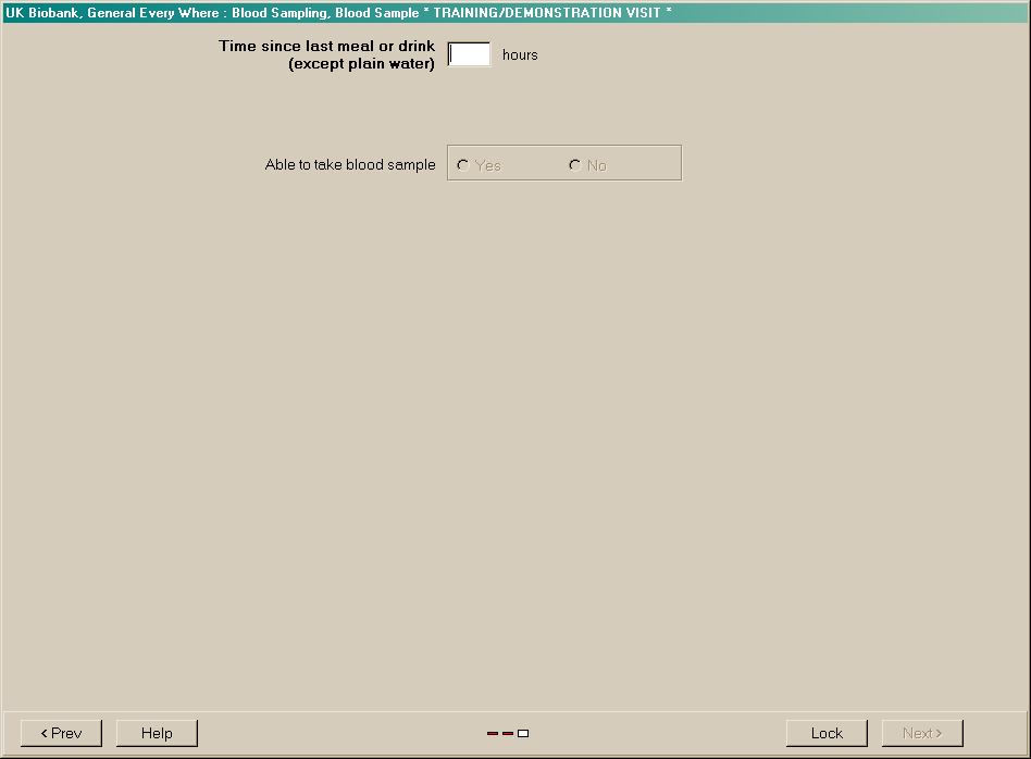 Screenshot of fasting question prior to blood sampling