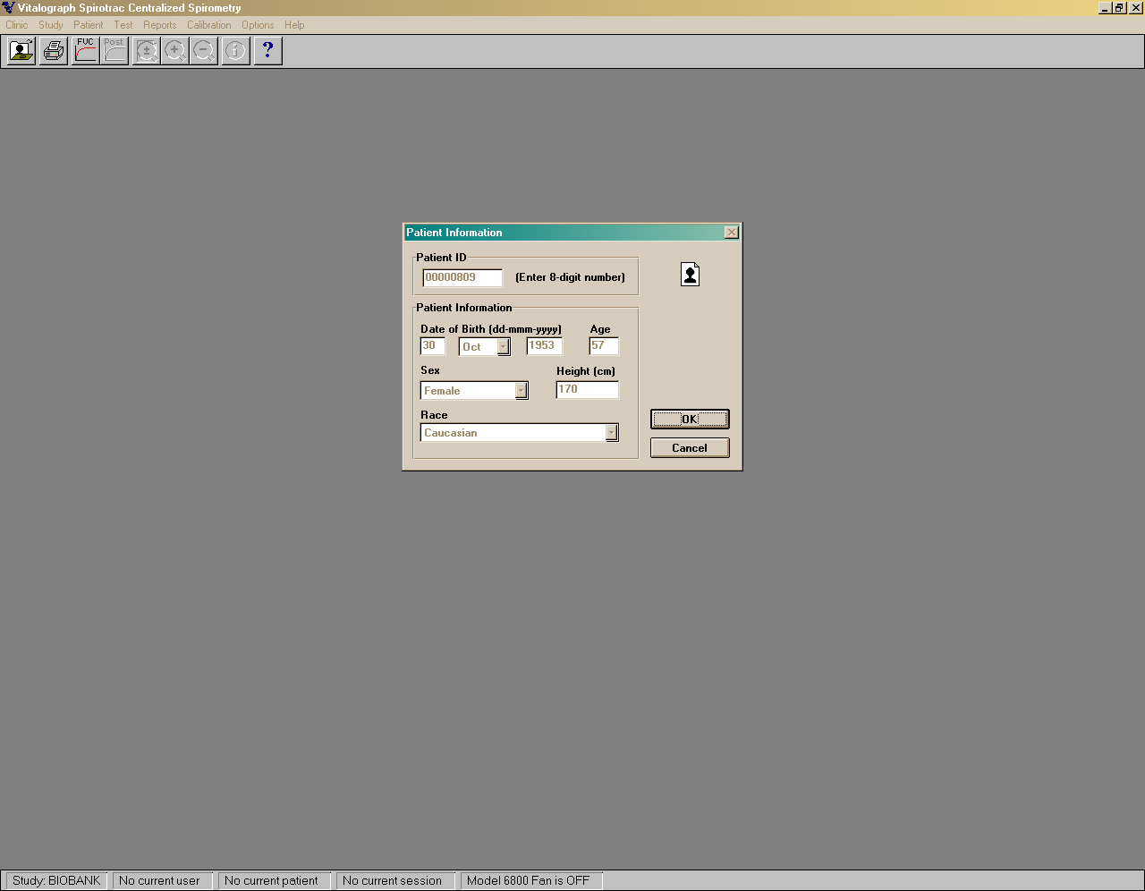 Screenshot of Vitalograph spirometry start-up showing automated data transfer