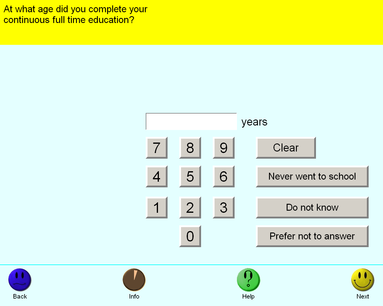 Screenshot of touchscreen questionnaire used to capture field 845 in the UK Biobank Assessment Centres using the ACE system.