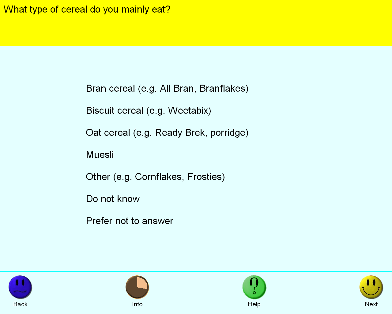 Screenshot of touchscreen questionnaire used to capture field 1468 in the UK Biobank Assessment Centres using the ACE system.