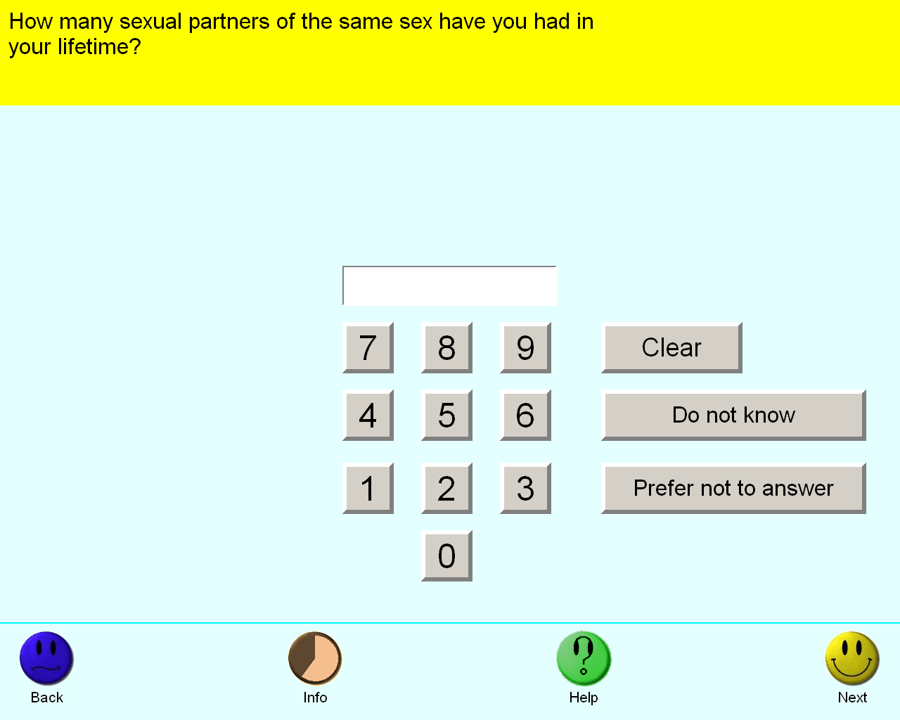 Screenshot of touchscreen questionnaire used to capture field 3669 in the UK Biobank Assessment Centres using the ACE system.