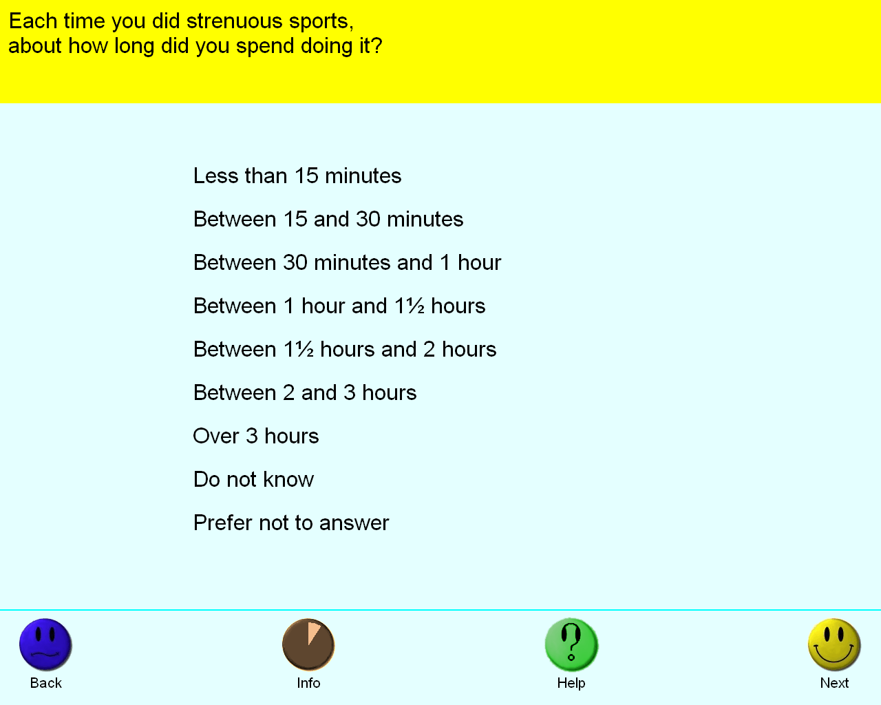 Screenshot of touchscreen questionnaire used to capture field 1001 in the UK Biobank Assessment Centres using the ACE system.