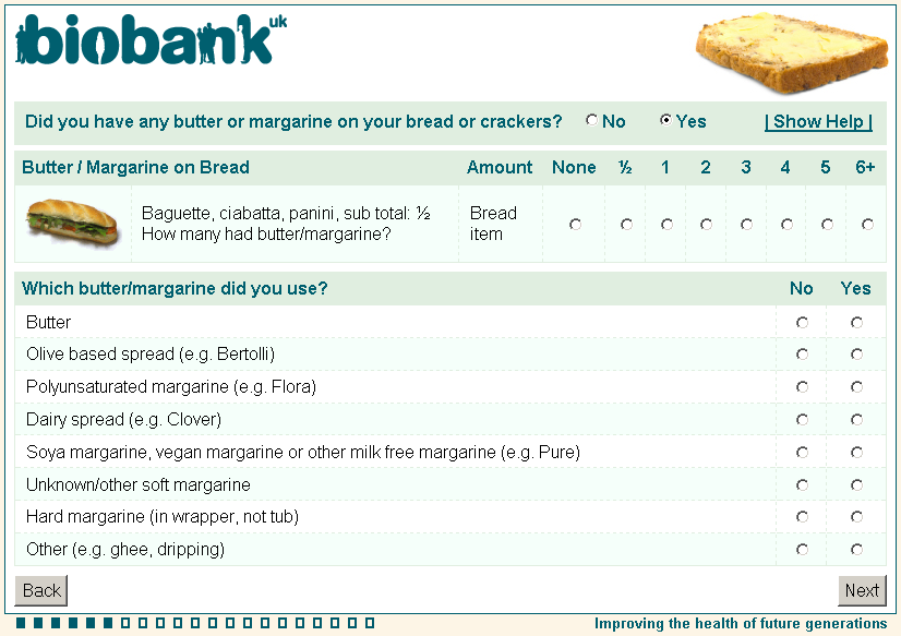 Online diet questionnaire screenshot wd0077, showing appearance as seen by participants using a web browser circa 2011.