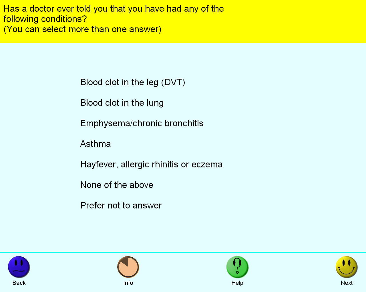 Screenshot of touchscreen questionnaire used to capture field 6152 in the UK Biobank Assessment Centres using the ACE system.