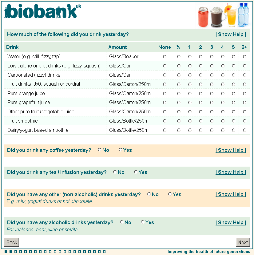 Online diet questionnaire screenshot wd0004, showing appearance as seen by participants using a web browser circa 2011.
