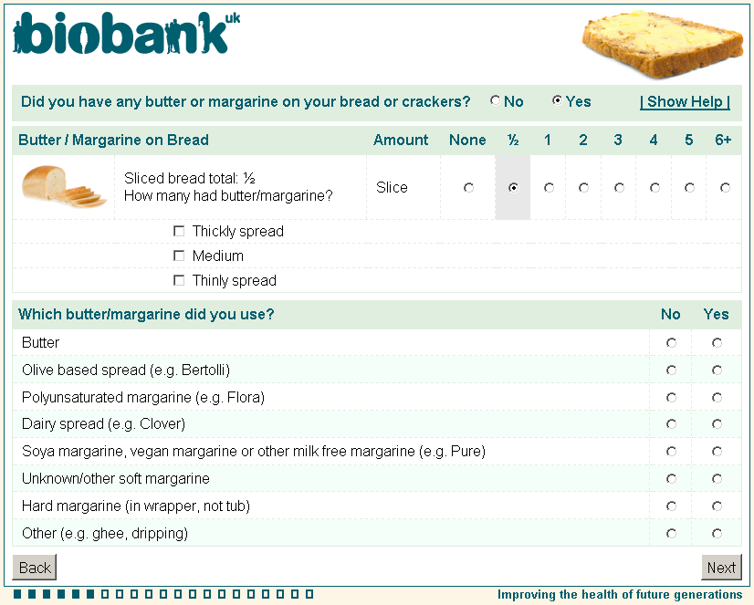 Online diet questionnaire screenshot wd0076, showing appearance as seen by participants using a web browser circa 2011.