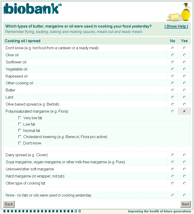Online diet questionnaire screenshot wd0111, showing appearance as seen by participants using a web browser circa 2011.